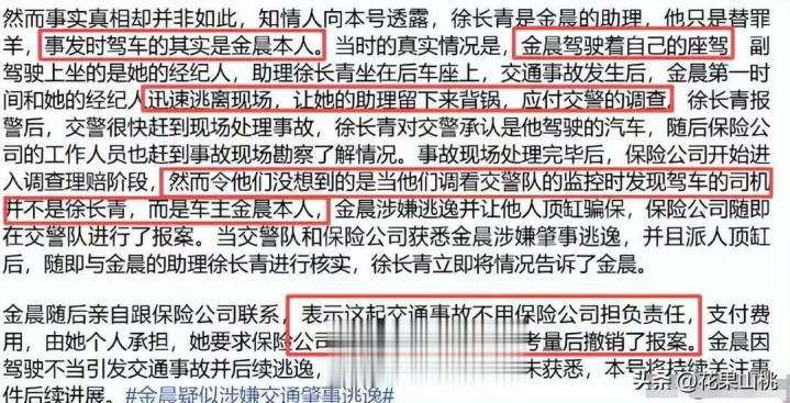 知情人曝金晨不止涉嫌交通肇事后逃逸,逃逸后还让其助理顶包
